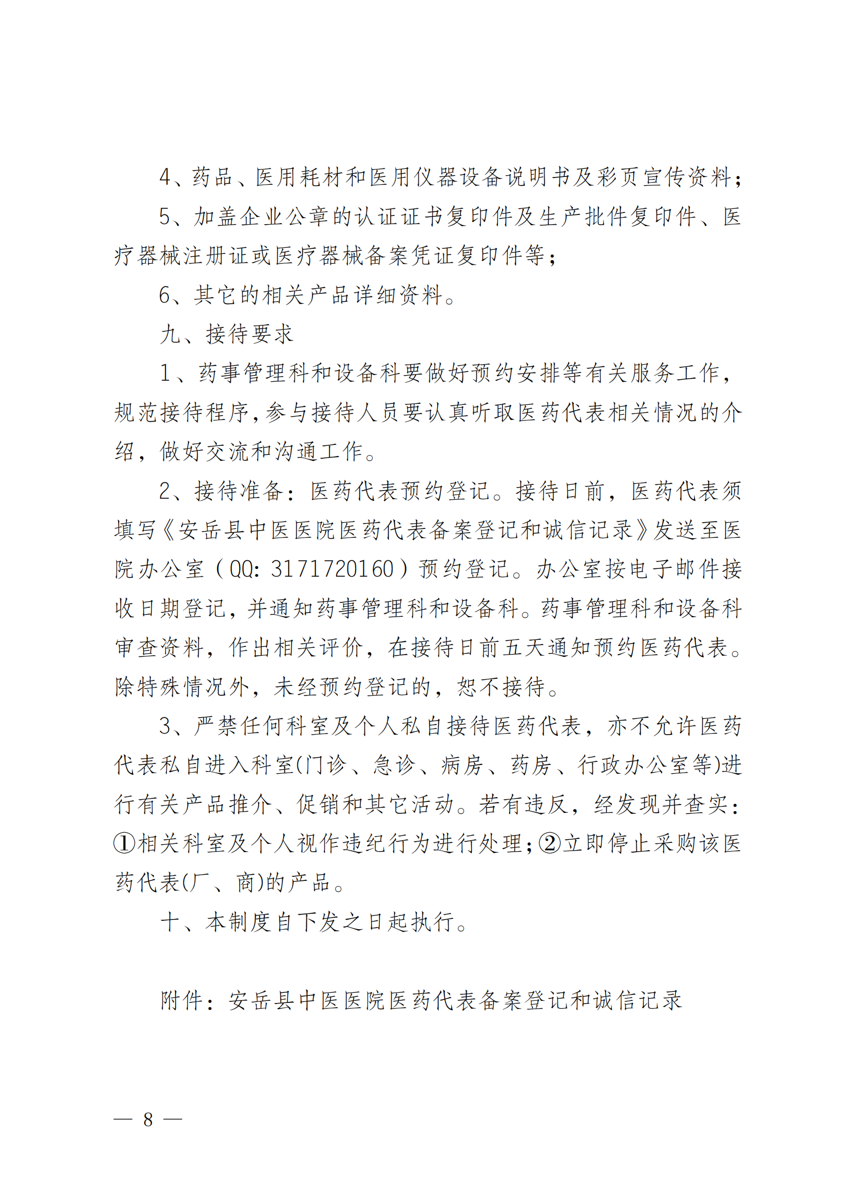 安中医〔2024〕63号 关于印发《医药代表备案管理制度》《医药代表诚信档案制度》《医药代表接待预约、管理制度》的通知