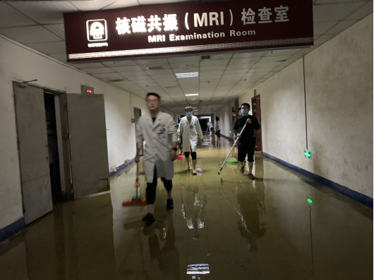 险情就是命令,安全第一,院领导当机立断,一方面立即安排党员突击队赶往医院现场,另一方面组织值班人员做好库房药品耗材和核磁共振设备的有效保护。在院领导亲临现场指挥下,数十名党员干部职工冒雨奔赴现场。与时间赛跑,一场惊心动魄的抢险,让凌乱不堪的院容,迅速恢复了昔日的整洁,为来院群众就诊提供最满意的环境和服务。