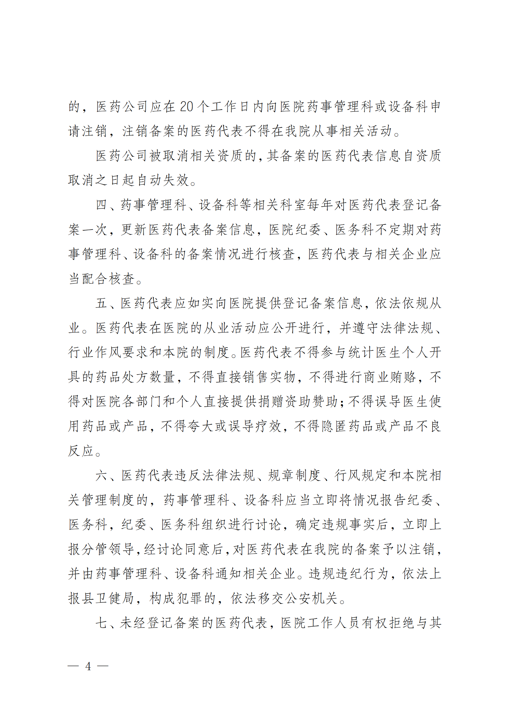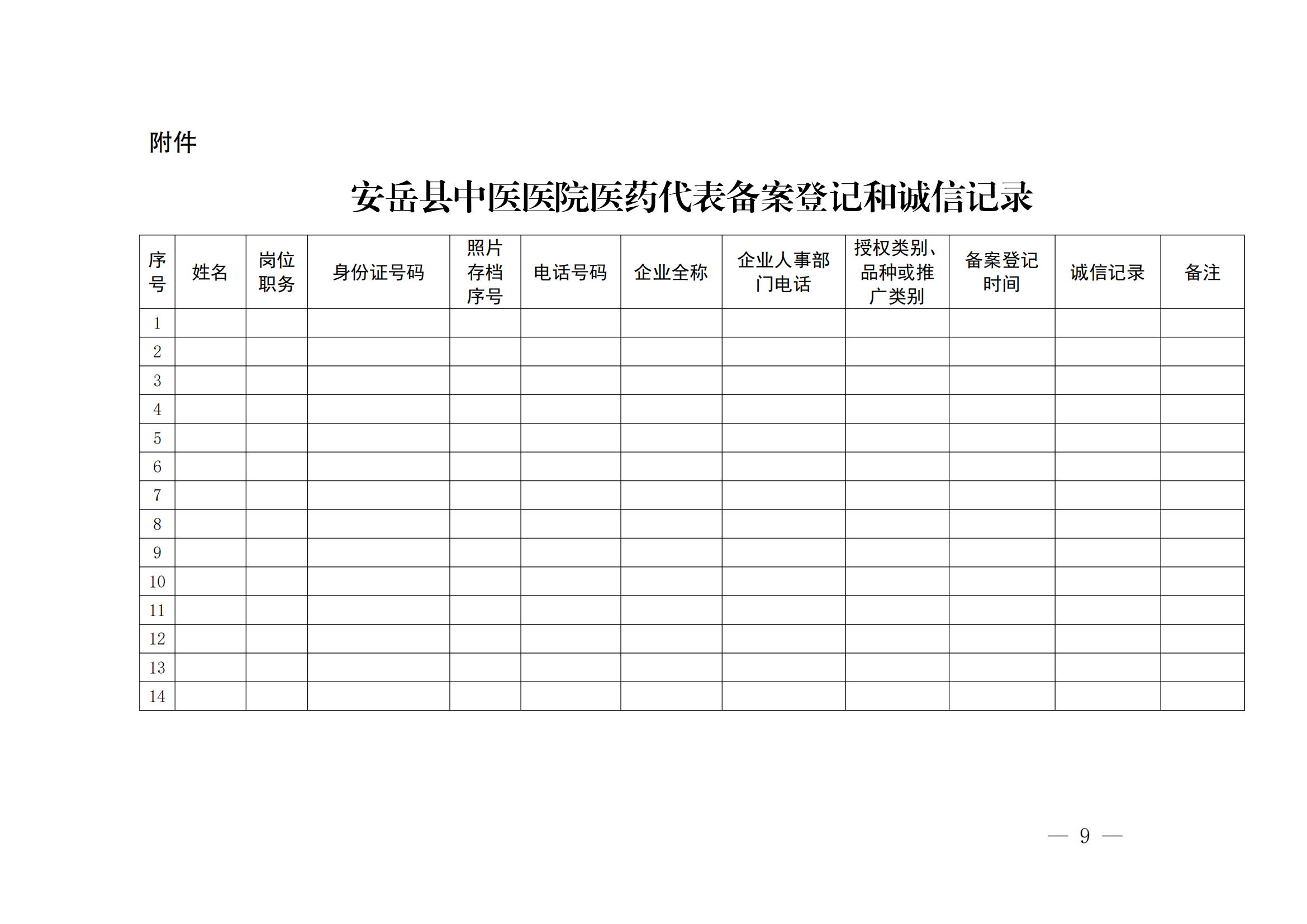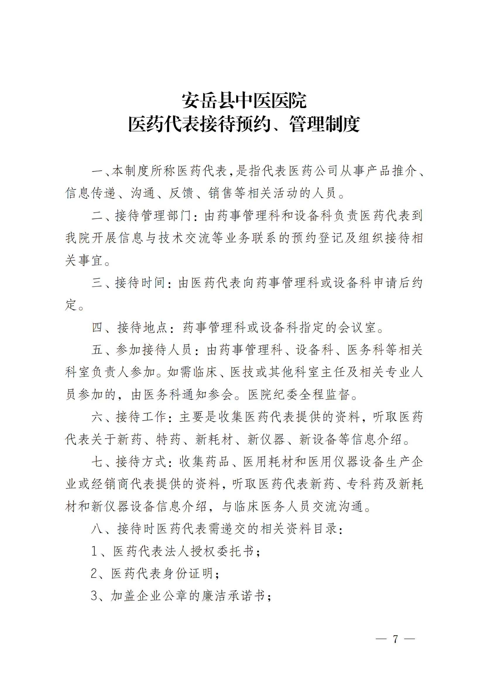 安中医〔2024〕63号 关于印发《医药代表备案管理制度》《医药代表诚信档案制度》《医药代表接待预约、管理制度》的通知