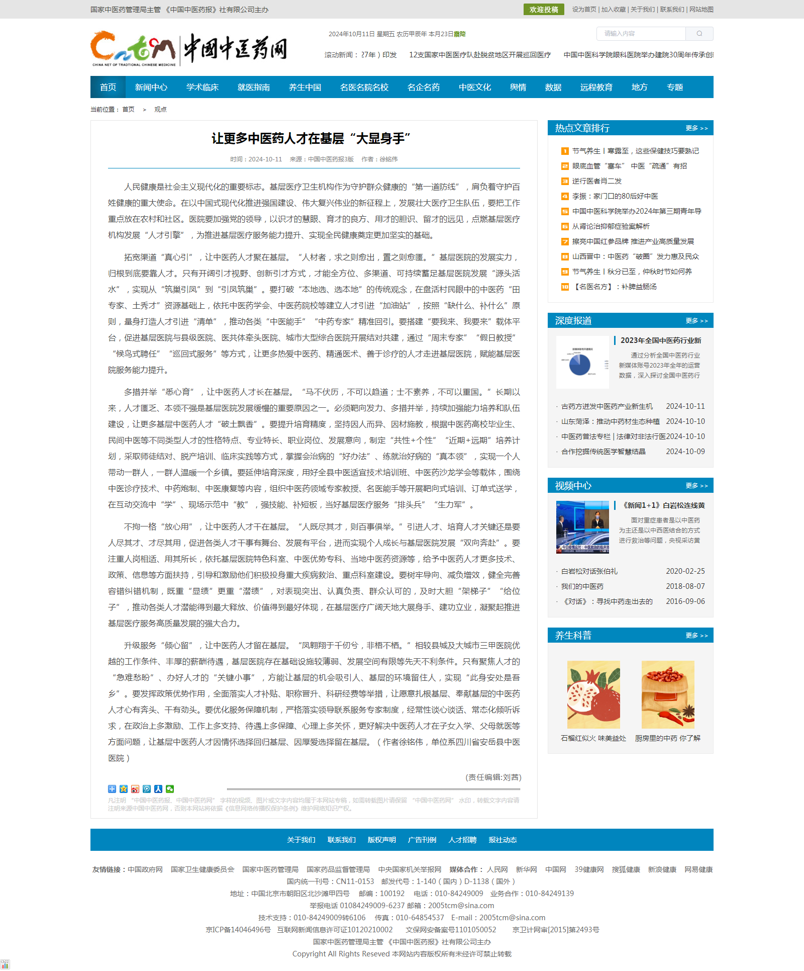 中国中医药网:让更多中医药人才在基层“大显身手”