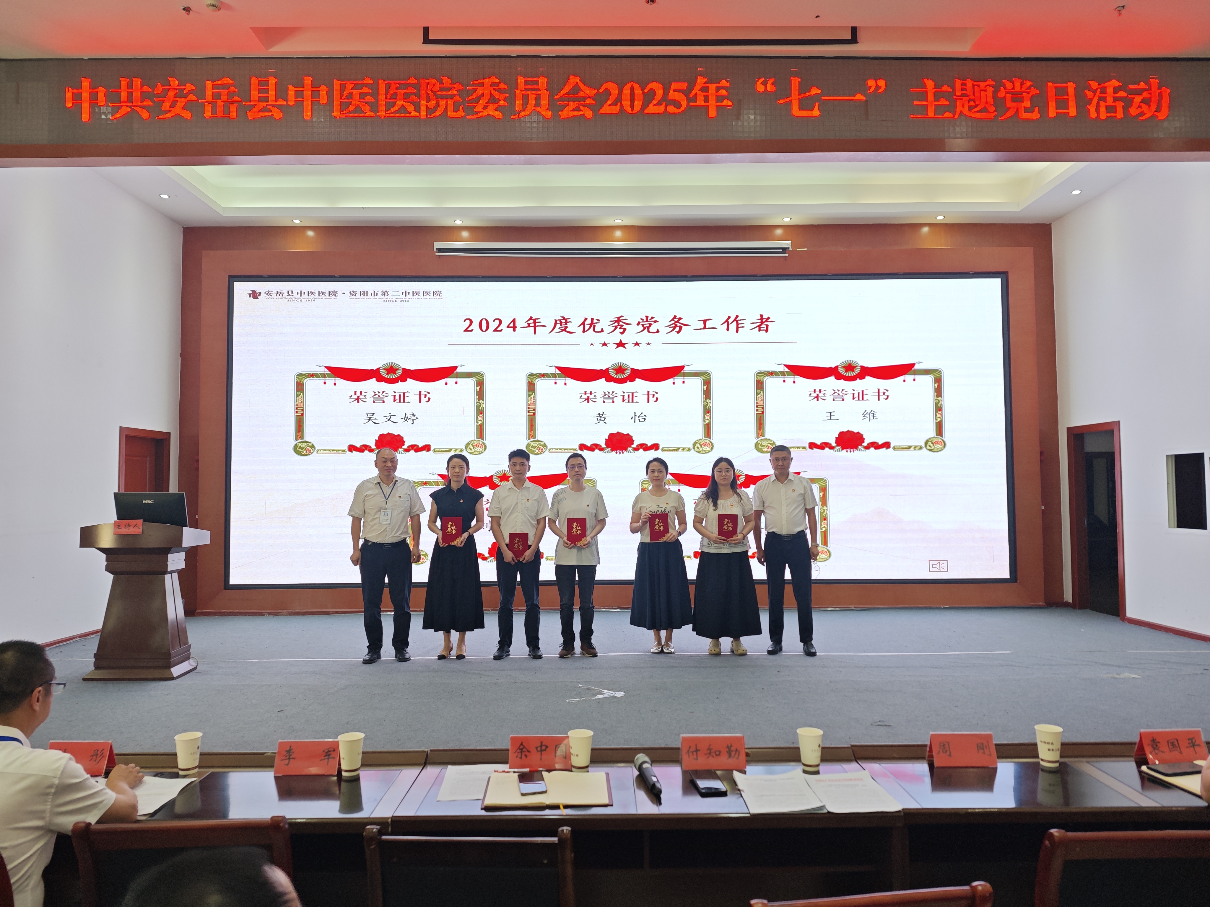 表彰先进树标杆。会上,付知勤同志宣读了优秀共产党员、优秀党务工作者表彰决定,激励全院党员对标先进、创先争优。两名优秀党员代表结合岗位实际,分享了“平凡小事背后的奉献故事”,彰显了医者担当。